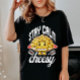 Um macaco e queijo bonitinho com as palavras de ficar calmo e ficar alegre. Perfeito para alimentos, amantes de massas e amantes de queijo.