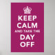 Um poster com uma paródia do famoso governo de informação pública do Reino Unido, de 1939, poster "Mantenha Calma e Continuar"; este design ostenta as palavras "Mantenha Calma e Tire o Dia de Folga". O raciocínio subjacente a esta design é que o Reino Unido terá direito a um feriado bancário adicional para celebrar o Jubileu de Diamante da Rainha, que será celebrado na terça-feira, 5 de junho de 2012. Embora este poster seja apresentado em Tamanho Extra Grande, você pode selecionar um tamanho menor ou um acabamento diferente à esquerda, se você escolher também. Você também pode personalizar facilmente a cor de fundo clicando em 'Personalizar' e em 'Editar' e, finalmente, em 'Fundo'. Na parte inferior direita da paleta você verá um pequeno código. Você pode digitar códigos para várias cores, isto é, EC1C24 para Original Red, 000042 para Royal Blue ou 005329 para Gorgeous Green, por exemplo. Você pode, é claro, clicar em qualquer uma das cores apresentadas na própria paleta.