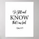 SAIBA QUE SOU DEUS PSALM 46:10 - impressão verso da bíblia cristã apresenta um design de tipografia preto e branco.