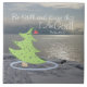 Azulejo de cerâmica de Natal retrata uma árvore de Natal numa praia coberta de neve com o sol brilhando na água e apresenta a Bíblia Verse Psalm 46:10, Fique quieto e saiba que eu sou Deus!