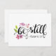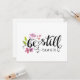 Dar esperança e encorajamento a este poderoso verso Bíblia. "Be still" é escrito em caligrafia cursiva moderna com flores cor-de-rosa. Do Salm 46:10 "Fique quieto e saiba que sou Deus" Salmo 46:10
