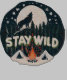 Um lobo fica silenciado uivando contra uma lua de cheio, cercado por uma floresta e uma fogueira entre duas tendas. As palavras "Fique Selvagem" são exibidas com destaque, enfatizando um sentido de aventura e natureza.