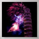 Digital collage of beautiful fireworks lighting Tower of Pisa (Italy)