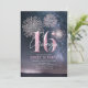 Anuncie a celebração do seu aniversário de 16 anos com estes convites de festas elegantes de fogos de artifício! Uma paleta de cor impressionante de ouro rosa num céu noturno azul-escuro e estrelado dá a este design um apelo chamativo. Seu nome, em texto de script fluindo, é exibido em um número '16' que brilha virtualmente. Personalize facilmente com os detalhes do seu partido usando o modelo fornecido. Procure ID984 para ver todos os produtos neste conjunto.