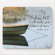 O Mousepad tem um barco na água com a Bíblia Verse Matthew 4:19, "Siga-me e farei de vocês pescadores de homens."