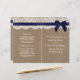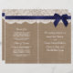 A design apresenta um adorável fundo de efeito de burlap rustico com uma trim romântica de efeito de renda branca vintage terminada com uma fita marinho impressionante com arco. Esses programas podem ser personalizados para sua ocasião especial e fariam a modelo perfeita para casamentos, chás de panela, festas de noivado, festas de aniversário e muito, muito mais. *Observe que o Zazzle só vende produtos impressos para que esses programas não tenham nenhum material real de burlap, renda, arco ou fita.
