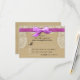 Belos cartões de rsvp de casamento com fundo de burlap, branco, cor de marfim e design de fita roxa. É o melhor cartão de resposta clássico para casamentos por país, vintage ou jardim.
