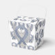 A caixa de favoritos do partido de anjo da guarda apresenta a pintura de um anjo da fita de consciência prateada. A cor da fita de sensibilização para a prata significa apoio à paralisia da célula, às crianças com deficiência física ou de aprendizagem, aos direitos de deficiência, à dislexia, ao abuso de idosos, à encefalite, à doença de Parkinson, à esquizofrenia, às perturbações cerebrais e às deficiências - inclui lesões cerebrais traumáticas (TBI) e sensibilização para o problema. Que esta fita prateada ajude a sensibilizar para estas causas! As caixas de favorecimento do partido de anjo de conscientização prateado podem ser personalizadas com mensagens personalizadas para fazer do obrigado que você oferece para arrecadações de fundos, educação de conscientização ou outros eventos ou ocasiões especiais.