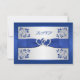 Este elegante cartão de resposta floral azul real e cinza prateado tem uma fita com "PRINTED ON" e um par de joias de diamante "PRINTED" e corações unidos com brilho FAUX, juntamente com uma borda de padrão damasco FAUX estampado que combina com o convite de aniversário de casamento de quarenta anos (40º) mostrado abaixo. ****POR FAVOR, OBSERVE que o papel prateado metálico é uma cor muito escura e irá alterar severamente as cores do design, então eu NÃO sugiro usar esse papel. Ele é mostrado aqui em papel básico, mas brilharia ainda mais em papel metálico gelo, que tem um brilho opalescente sutil. O papel feltro é um papel grosso e texturizado que também daria resultados luxuosos. O linho esfriará o design e é um papel leve com linhas finas que podem não ser de seu agrado. ALÉM DISSO, se você mudar as fontes ou tamanhos de fonte, seu texto pode não caber mais corretamente. A Zazzle não editará nada para erros de digitação, alinhamento ou qualquer outra coisa, e eu não verei seu convite. Tudo será impresso como aparece na sua tela. Se você precisar de ajuda com o convite, por favor entre em contato comigo ANTES de fazer o pedido. Este convite foi projetado para caber no cartão de tamanho 3,5x5. Se você mudar para outro tamanho, o design não caberá mais corretamente, então se você quiser um tamanho diferente, por favor entre em contato comigo para que eu