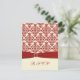 **Por favor, note que a fita e as joias são IMPRESSAS NAS IMAGENS e não são reais. Este cartão de RSVP creme e damasco vermelho combina com o convite de casamento mostrado abaixo.
