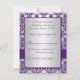 Este cartão de RSVP damasco prateado e roxo combina com o convite de casamento e outros itens mostrados abaixo. **Por favor, note que a fita e as joias são imagens e não são reais. O texto e o papel são totalmente personalizáveis. Se você precisar de outros itens correspondentes, por favor envie um e-mail para niteowlstudio@gmail.com com sua solicitação.