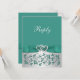 Este cartão de R.S.V.P. de casamento floral cinza prateado e azul turquesa elegante e romântico tem uma fita e laço IMPRESSOS com um par de joias de diamante IMPRESSAS e um broche de corações unidos FAUX (simulados) com brilho que combina com os convites de casamento mostrados abaixo. O texto e o tipo de papel são personalizáveis. Alguns papéis podem alterar a cor do design. Eu NÃO usaria os papéis metálicos dourado, champanhe ou prata, pois eles escurecerão o design e descolorirão o branco dos diamantes sem adicionar nenhum brilho extra além do que você obteria com o papel metálico gelo. O papel feltro também descolorirá o design. ALÉM DISSO, se você redimensionar o convite, ou se você mudar as fontes, ou o tamanho da fonte, parte do design e/ou texto pode ser cortado. Tudo será impresso como você vê na tela. Eu não verei seu convite, e a Zazzle NÃO irá corrigir nada (erros de digitação, desalinhamento, etc.). Se você precisar de ajuda com este convite, por favor me envie um e-mail ANTES de fazer o seu pedido. Se você precisar de itens correspondentes, ou se você