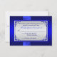 Este elegante e romântico cartão de resposta de casamento em azul cobalto e cinza prateado com flores tem uma fita e laço IMPRESSOS com um par de joias de diamante IMPRESSAS e corações unidos com brilho FALSO que combinam com o convite de casamento mostrado abaixo. ****POR FAVOR, OBSERVE que não há imagens em relevo ou embutidas neste cartão. ALÉM DISSO, a Zazzle NÃO editará nada em busca de erros de digitação ou alinhamento ou espaçamento, então, por favor, certifique-se de que o seu texto esteja exatamente como você deseja. Não verei seu convite, então, se precisar de ajuda com a personalização do meu design, por favor, envie-me um e-mail ANTES de fazer o pedido. Tudo é impresso plano. Também pode ser usado para vários outros eventos especiais, como um aniversário ou noivado. O texto e as opções de papel são totalmente personalizáveis, mas NÃO sugiro mudar o papel para o metálico prateado ou dourado, pois são muito escuros e alterarão a legibilidade e a aparência do design. O papel delicado é MUITO fino