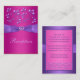 Este cartão fuchsia rosa e roxo de recepção floral tem uma fita roxa IMPRESSA e uma fivela de gema e diamante IMPRESSA que combina com o convite de casamento mostrado abaixo. Tudo será impresso exatamente como aparece no seu monitor. Você também pode personalizar isso para ser um cartão de registro de presente, um cartão de site de casamento, um cartão de acomodações, um cartão de informações ou um cartão de direções, alterando o texto de acordo. Se houver outros itens correspondentes que você precise, envie um e-mail para niteowlstudio@gmail.com.