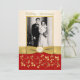 Este convite de foto elegante para aniversário de casamento de 50 anos, com flores vermelhas, marfim e douradas e arabescos, tem uma fita dourada IMPRESSA e um medalhão marfim e dourado com aparência de FALSO gravado impresso. Possui uma área de modelo para você carregar sua própria foto digital. Você pode remover o texto estilizado em cursiva "Aniversário de Casamento" ou "50º". Todo o texto é personalizável, assim como as opções de papel. ****POR FAVOR, OBSERVE que o papel dourado é um dourado muito escuro e latão e irá alterar as cores do design (transformar a foto em dourado, etc.), então NÃO sugiro usar esse papel. ALÉM DISSO, se você alterar as fontes ou tamanhos de fonte, seu texto pode não caber mais corretamente. A Zazzle não edita nada para erros de digitação, alinhamento ou qualquer outra coisa, e eu não verei seu convite. Tudo será impresso como aparece no seu monitor. Se você precisar de ajuda com o convite, por favor entre em contato comigo ANTES de fazer o pedido. Este convite é projetado para se ajustar ao cartão de tamanho 5x7. Se você mudar para outro tamanho, o design não