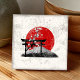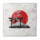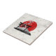 Este design de azulejo de cerâmica patriota mostra a bandeira do Japão sobrepondo imagens do Monte Fuji, flores de cereja e um portão de torii... tudo com um efeito moderno e angustiante. Procure ID153 para ver outros produtos com este design.