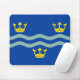 Mousepad with design with a flag of historic county of Cambridgeshire, in England, Great Britain; blue flag with three golden crowns and two waves