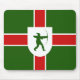 Mousepad with design with a flag of historic county of Nottinghamshire, in England, Great Britain; green flag with a red cross, with inescutcheon with illustration of Robin Hood in the centre