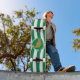 Skateboard with design with a flag of historic county of Wiltshire, in England, Great Britain; white and green flag with angled stripes and great bustard in the center