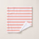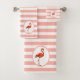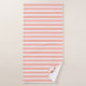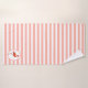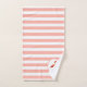Toalha de moda com um belo flamingo com riscas de coral e brancas no fundo. A imagem é monociclo.