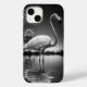 Majestoso flamingo alto em uma piscina com fundo tropical e de verão. A composição lúdica cria um senso de alegria e relaxamento, evocando memórias de dias quentes de verão. O belo e delicado flamingo adiciona um toque de elegância e graça à peça.