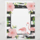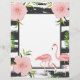 Pequeno impressão bonitinho com listras brancas e pretas confusas e flamingos rosa e flores.