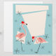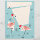 Um design de Natal animado e esquisito com um toque retrorreflector com flamingos cor-de-rosa vestindo chapéus de Santa, formas geométricas creme e estrelas em um fundo azul (mudança de cor). Um design personalizável para você personalizar com seu próprio texto, imagens e ideias. Uma imagem de arte digital original criada por QuirkyChic.