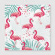 Flamingo tropical e folhas, padrão de verão.