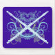 O mousepad da flauta faz o presente agradável para professores ou estudantes da flauta. Flautas cruzadas bonitas no design afligido da música do olhar. Cores de tom azuis.