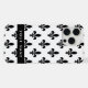 Elegant, stylish and sophisticated pattern with black Fleur De Lis Pattern on white background with white on black monogram. Modern and trendy design, perfect for the heraldry charge lover.