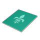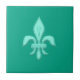 Azulejo cerâmico em padrão clássico de pulgas de lis (pulur-de-lis) em aqua mole em fundo de turquesa/pavão