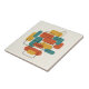 This abstract composition captures the essence of classic Mid-Century design through its use of simple, overlapping, and rounded rectangular forms. The shapes are arranged to suggest a floating, weightless structure, with some forms defined by solid colors (burnt orange, teal, and mustard yellow) and others by thin black outlines. The minimalist yet dynamic arrangement creates a sophisticated, retro-modern look, making it an ideal choice for a striking accent tile or kitchen backsplash. Search ID1224 to see other designs in this series. Note: design adapted from generative content.