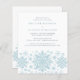 Flocos de neve de cor azul muito elegantes criam uma bonito borda ao longo do final deste convite de aniversário para adultos. A design moderna e minimalista tem uma sensação aberta e arejada. A estética contemporânea apelará a pessoas de todas as idades.