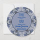 Este convite de casamento apresenta um design circular de floco de neve caleidoscópio em azul. Na frente estão os nomes dos casais no centro. No verso está uma duplicata do floco de neve com um centro azul para os detalhes do convite. Entre em contato comigo se precisar de ajuda para personalizar.