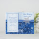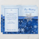 Floco de neve azul prateado em um fundo azul de flocos de neve Flyer do Programa de Casamento.