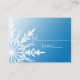 Personalize o floco de neve branco festivo em cartões azuis do lugar do casamento no inverno com o nome pessoal de seu convidado e da mesa em que se sentarão em seu dezembro, recepção do casamento dos janeiro ou fevereiro. Este a escolta feita sob encomenda elegante do tema do país das maravilhas do inverno carda a característica um design branco intrincado do floco de neve em um fundo azul do inclinação.
