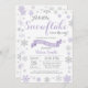 Convite do chá de fraldas do inverno. Floco de neve roxo. Convite do chá de fraldas da menina. O chá de fraldas do feriado de inverno convida. Flocos de neve de prata roxos e cinzentos. Fundo branco. Para uma personalização mais adicional, clique por favor "personalizam-no" botão e usam-nos nossa ferramenta de design para alterar este modelo.
