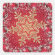 Flocos de neve dourados em um adesivo de fundo nevado vermelho