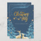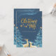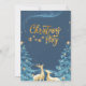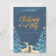 Um convite de festas de Natal encantador com um céu azul profundo cheio de estrelas brilhantes e um brilho mágico e giro. O texto do ouro diz 'Festa de Natal', acentuado com estrelas penduradas delicadas, enquanto duas renas ouros elegantes olham para cima. Pabeus de neve abrem a cena, melhorando a atmosfera confortável e festiva. Esta design evoca uma sensação de maravilha, calor e alegria de férias, perfeita para convidar convidados para uma comemoração memorável de Natal.