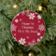 Celebre seu primeiro Natal como um casal casado com nosso belo Enfeites de natal. Adorado com flocos de neve brancos delicados em fundo vermelho profundo, esta é a defesa perfeita para recém-casados. Estes ornamentos podem ser personalizados com sua mensagem e foto especiais para comemorar este tempo mágico.