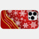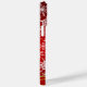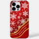 Esta capa de telefone de Natal personalizada apresenta um padrão vermelho e branco de flocos de neve decorado com ondas ouro amarelas. O modelo torna fácil digitar seu nome para criar um acessório exclusivo para uma estação de férias de inverno.