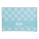Adicione seu nome neste flocos de neve brancos no design de padrão de fundo azul.