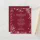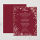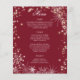 Flocos de neve com um toque de cardápio de casamento de inverno borgonha brilhante com opção de alteração de texto e cor personalizados disponíveis tanto na frente quanto no verso, conforme necessário.