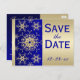Este postal de save the date festivo e elegante em azul-marinho e azul-real com flocos de neve com brilho dourado falso (IMPRESSO) combina com o convite de casamento mostrado abaixo. Seria um anúncio perfeito para o seu casamento de inverno ou Natal. Se você precisar de quaisquer itens adicionais correspondentes, por favor envie um e-mail para niteowlstudio@gmail.com com o seu pedido.