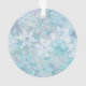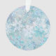 O Enfeites de natal acrílico Snowflakes apresenta um gráfico digital de flocos de neve que parecem estar a dançar numa tempestade, coloridos sobretudo em tons de azul e branco.