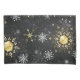 Fundo de Natal preto com flocos de neve de joias douradas e pretas. Flocos de neve ouro. Natal.