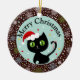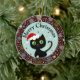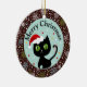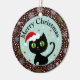 As formas vairous do floco da neve estão no limão, na cerceta e no branco com os mesmos pontos e estrelas das cores no fundo castanho chocolate muito escuro. O gato preto no centro com um chapéu do papai noel e um bastão de doces em seu conto. O vermelho, o branco e as estrelas do ouro no fundo da cerceta. Esta é uma ilustração digital.