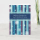 Feliz cartão de cumprimentos de Natal para seu primo com flocos de neve contemporâneos e padrão de listras em azul escuro, verde, branco, turquesa e roxo elegante e moderno. Deseje bem aos seus primos este feriado com este cartão de na moda.