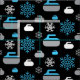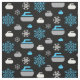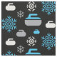 Tecido com floco de neve e padrão de rocha em azul, cinza e branco sobre fundo preto. Perfeito para curadores e fãs.