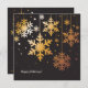 Um lindo cartão de feriado apresentando belos flocos de neve dourados pendurados na noite. No verso, mais flocos de neve e sua foto favorita emoldurada em ouro.